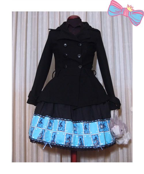 Details: Each skirt comes with a removable black bow that you can also use as a brooch. And has a black lace with hearts and four little ribbons.